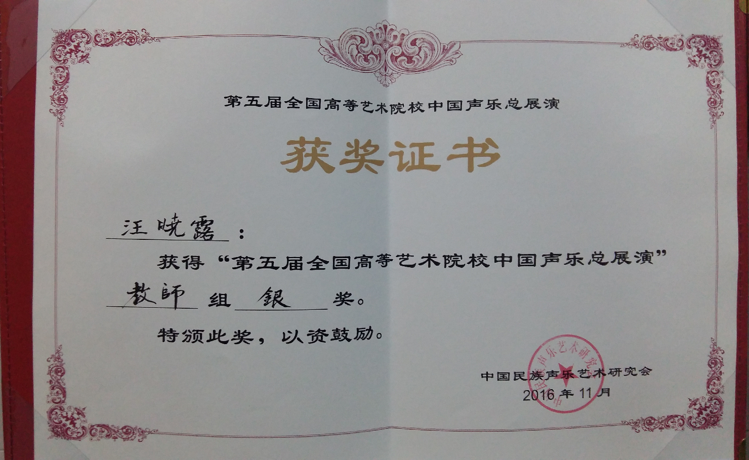 【荣誉】国产直播 教师汪晓露斩获“全国高等艺术院校中国声乐总展演大赛”银奖