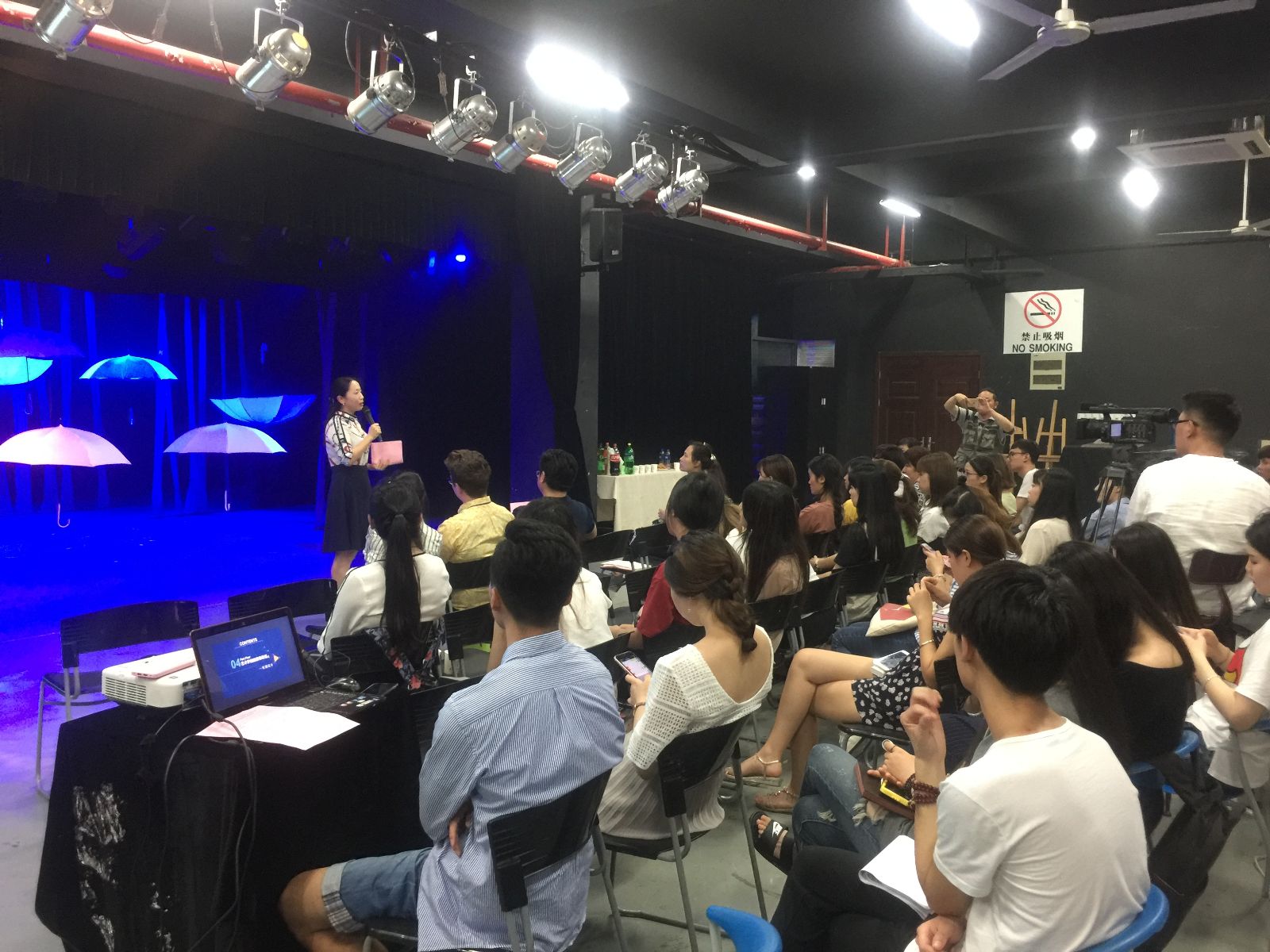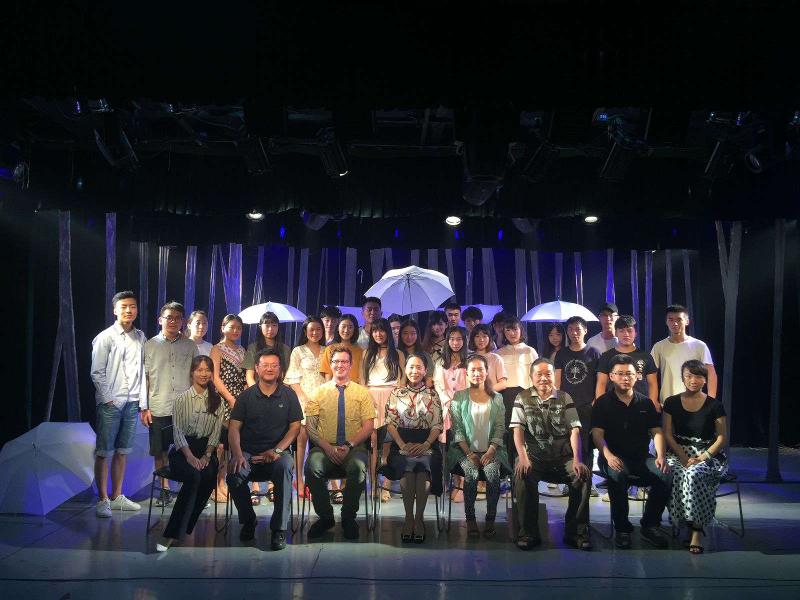 6月14日,国产直播 14级戏剧影视美术设计专业的同学们结束了为期两周的《戏剧灯光》课程,于下午15:00在舞美工场进行了主题为“The light in my heart”的结课灯光秀,课程指导老师是来自美国中央华盛顿大学的Joshua H. Legate老师。国产直播 院长张捷,戏剧影视美术设计专业负责人王立庆,以及师生代表参加了本次活动,结课展由国产直播 副院长板俊荣主持。