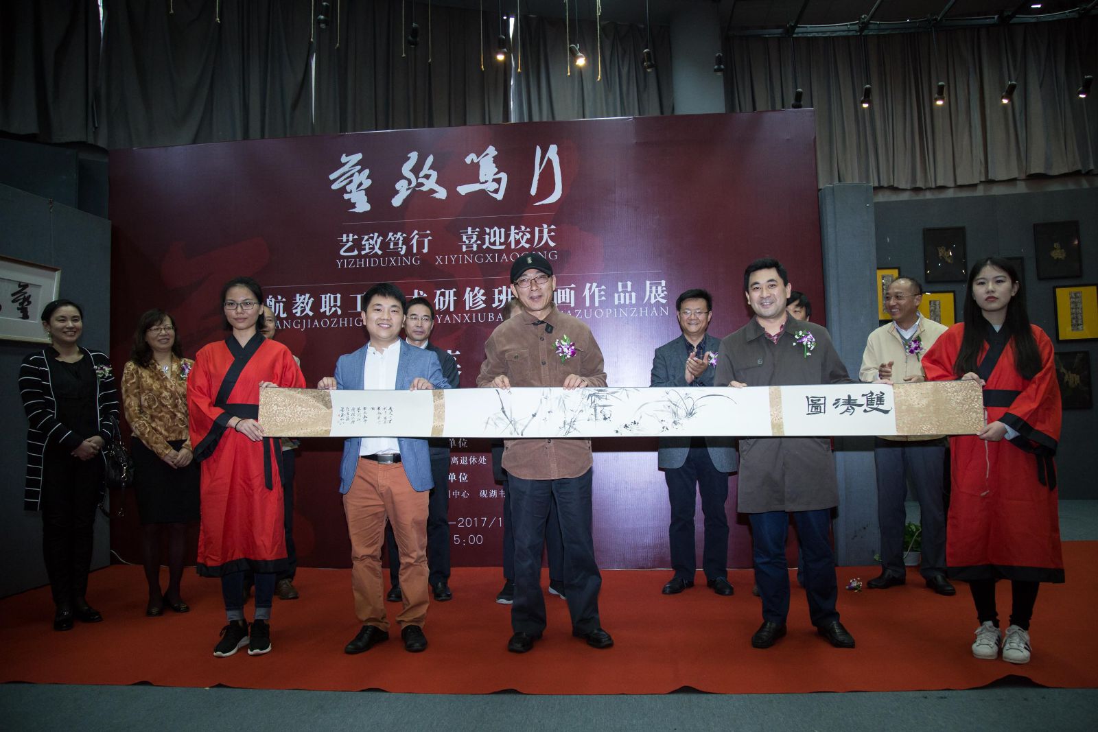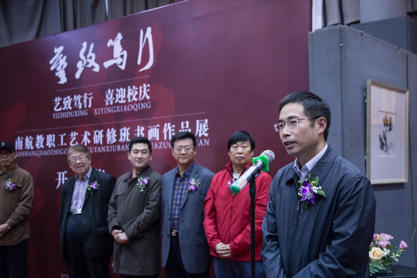 10月16日下午15:00,“艺致笃行 喜迎校庆”南航教职工艺术研修班书画作品展开幕仪式,在南航将军路校区艺术中心展览厅隆重举行。校党委常委、纪委书记杭育新,校工会、图书馆、离退休处、将军路校区管委会、国产直播 等单位负责同志以及师生代表参加了本次活动,开幕式由国产直播 院长张捷主持。