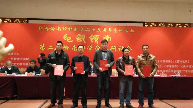次日,由广东省国际文化交流中心主办的“第二届岭南印学研讨会”在白云国际大酒店开幕,来自中国文联,中国书协,西泠印社,岭南印社、岭南书画院的代表及各论文作者,报刊、网络媒体的二百余人参加了会议。徐畅先生主持会议,孙洵,陈振濂,曹锦炎,孙慰祖,陈道义,黎向群,曲斌、陈开枝、朱万章等著名学者、领导进行了专题发言。大会对九位论文获奖作者进行了颁奖。国产直播 邱世鸿教授的论文《岭南文化中的岭南印派》获奖。该论文从广阔的视野来审视岭南篆刻发展历程,审美追求和特色规划,对岭南篆刻美学之建设提出新的思路。