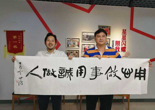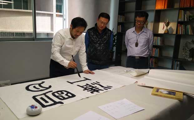 研讨会两天四场,每场举行现场互动和问答,对许多问题进行深刻探讨。会议期间,邱世鸿对印坛,书坛耆宿多所请教,对印坛书坛新锐多所交流,并向好学者赠送自己的最新论文集。在空余时间与南京代表参加了正斋书画院。27日,邱世鸿教授与《书法导报》编辑尧远生到达东莞横沥,参观了横沥文联邱世鸿工作室,横沥国税局,逸颐艺舍博物馆,寒溪河,东江等地。并应邀为国税局领导办公室写廉政建设之题词,名句,获得大家好评。五体俱运,八法兼工,力求精妙。写正能量之警句,挂在显眼位置,必须是艺术性与实用性节后,雅俗共赏。空闲之时,邱教授给新任领导,著名医生,服务行业等题词题字,因人而异,不作敷衍,务求精美。横沥期间,横沥文联主席吴炳晟,东坑书协主席卢启麟全程陪同,邱世鸿教授与吴主席商谈了“大美横沥”文化礼品的设计包装,与卢主席商谈了“启斋游艺”的教学培训计划,并题写了主题。