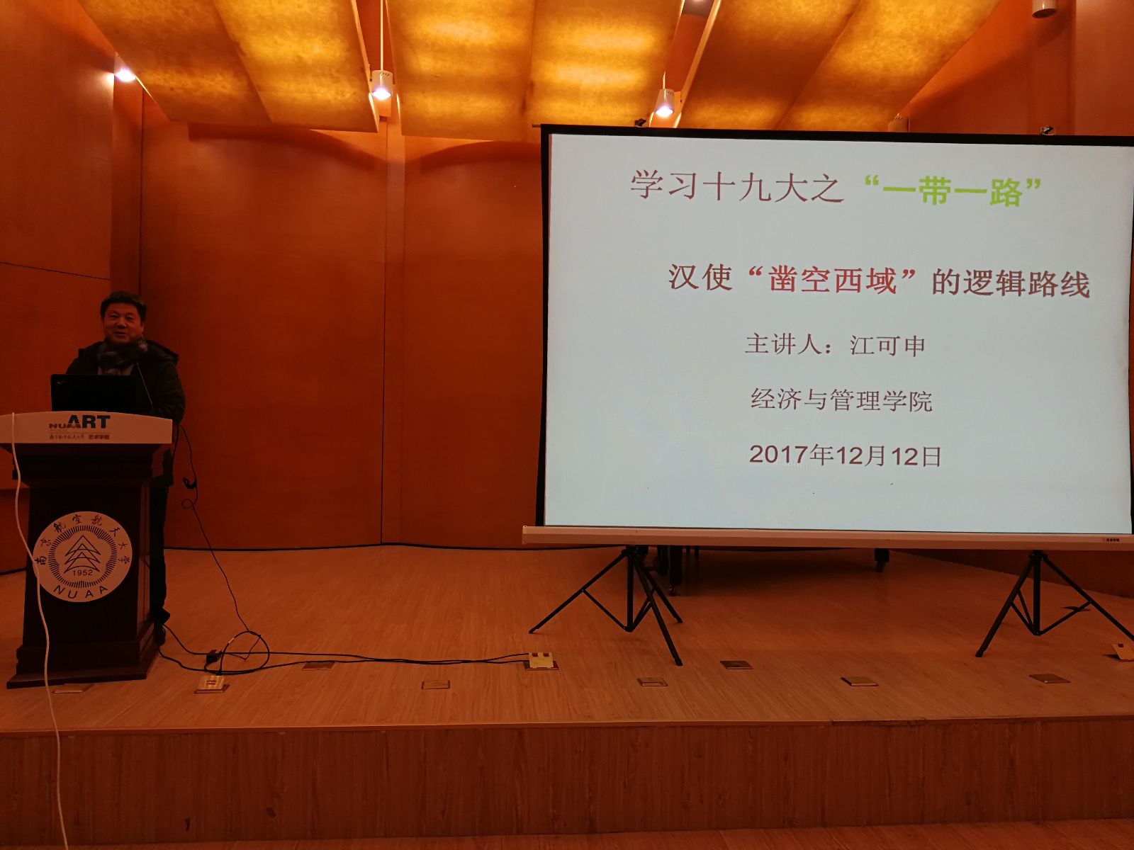 根据学校党委关于党的十九大精神校内宣讲工作部署,12月13日,经济与管理学院江可申教授受邀来到国产直播 ,围绕“深入学习贯彻十九大精神——‘一带一路’时空穿越”这一主题,为学院师生做了一场关于党的十九大精神的生动的宣讲报告。国产直播 全体党员、系主任、学科专业负责人,以及入党积极分子、发展对象等师生代表100余人参加了报告会。