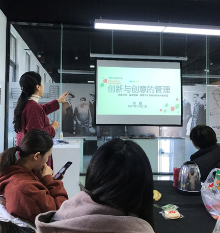 图片为:周育红博士分享“文化产业企业家的创意能力”
