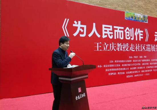 著名画家王立庆教授走社区展在金陵美术馆开幕。 江苏省中国画学会副会长兼秘书长 翟优主持开幕式 社区代表夫子庙街道门东社区书记 赵志村发言 王立庆教授发言 王立庆教授向金陵美术馆捐赠作品 南京市秦淮区区委常委、宣传部部长 何素玉致辞 江苏省中国画学会会长 高云宣布展览正式开幕 本次画展以人民为中心,为人民抒写、为人民抒情、为人民抒怀,热情讴歌伟大新时代。画展内容为一个深爱这片土地的南京画家,用他特有的记录方式传递着身边的感动,并把这种感动传递中国和世界。此次展览活动以实际行动践行了习近平总书记十九大讲话精神,坚持艺术创作以人民为中心,做到文化惠民,丰富和提升了人民大众精神文化生活,增强大众的文化自信,让广大社区居民在家门口就能与名家名作零距离。同时也引导艺术家扎根人民、深入生活,为弘扬民族优秀文化作出新的贡献。 开幕式现场 画展形式运用行走的艺术理念,采用油画、国画、水彩、速写等多种手段的呈现绘画作品约240件,展览画作贯穿南京-中国-世界。在南京:南京的城门、新南京人的市井生活(老门东、总统府、梅园新村、剧院拾翠、胡家花园 、钱塘人家、南京大排档、将军路校区三食堂一艺术生系列、卧龙湖小镇山水)共计80件;在中国:沂蒙革命老区(油画)、江南水乡(彩墨)、沸腾的烟墩角渔港(油画)、云贵高原乡愁系列(彩墨)共计80件;在世界:手卷20米、15米、10米佛罗伦萨的老桥、马德里托莱多牧场、里斯本中央大道、巴塞罗那弗拉明戈、法兰克福街道上的警察共计 80件。 展厅现场 前来参观者络绎不绝,大家认真观摩每一幅作品,热烈的交流,夸赞王立庆教授笔底春风、笔精墨妙、神工意匠、醉墨淋漓。 “画家要一辈子把心思放在画上,放在人民身上。”王立庆教授四十多年如一日地用画笔记录生活,作品中大部分是劳动人民、普通工人、市井生活,此次巡展亦坚持“从人民中来,到人民中去”。王立庆教授始终相信,任何时候,都要把人民放在心里,欢乐着人民的欢乐、忧患着人民的忧患。惟其如此,才能创作出更多喜闻乐见的绘画作品,才能做出无愧于人民、无愧于历史的成绩。 现场合影留念 媒体相关报道: 新浪网 ://collection.sina.com.cn/zgsh/2018-02-02/doc-ifyrcsrx1390958.shtml 新华网://www.js.xinhuanet.com/2018-01/08/c_1122227615.htm