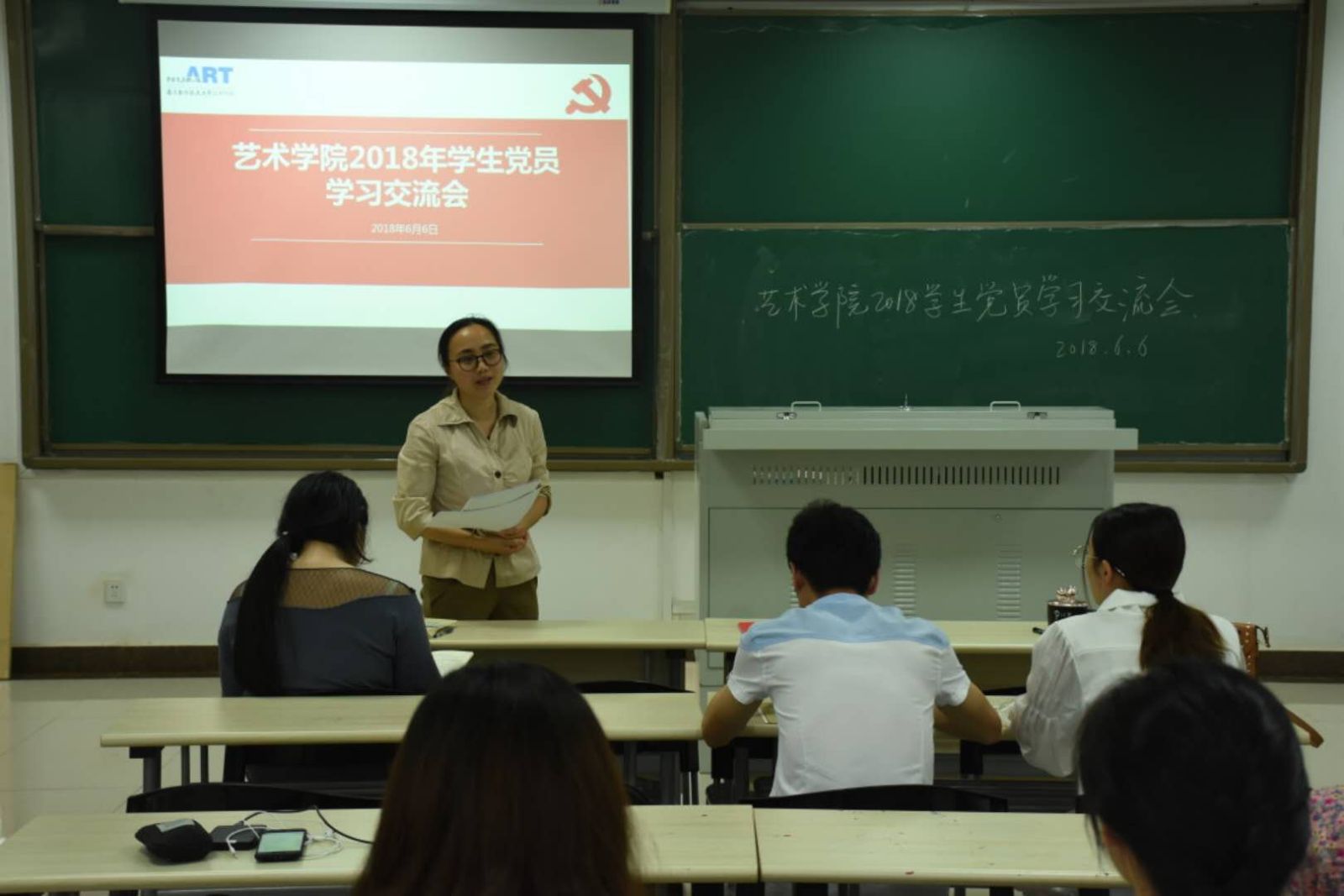 2018年6月6日中午,在国产直播 209教室召开了国产直播 全体学生党员学习交流会,国产直播 党委副书记张林、孙吟吟老师以及辅导员老师一同参加了本次交流会。
