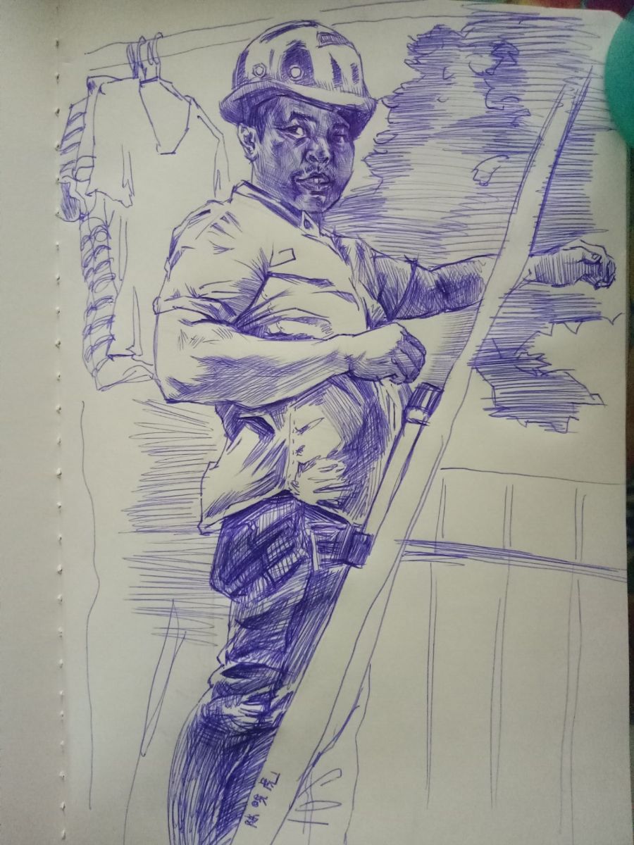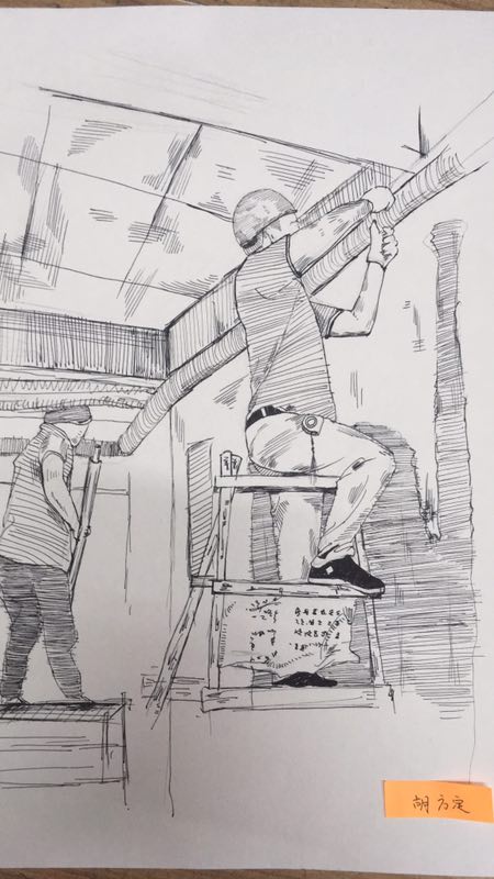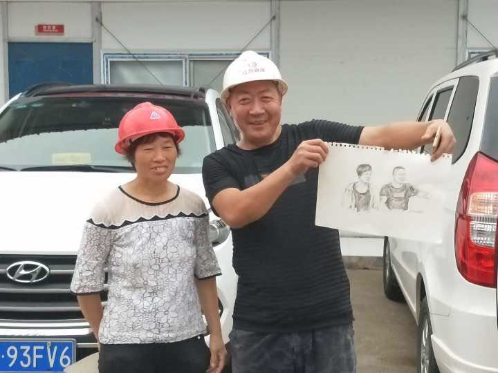 采访完成后,队员们各显神通,对照着照片,用铅笔、针管笔、水彩、彩铅等开始为工人绘制全家福,一共画了60张。队员们将这些画塑封好后,又亲自去了工地,将绘制的全家福和工作图都赠送给了工人,当工人们看到队员们耐心绘制的全家福后,脸上浮现出满足的笑容。看着画卷中栩栩如生的画像,仿佛这就是他们不久前在景区或是在家中拍下的“全家福”,工人们十分感动,告诉队员:“感觉像是跟家人相聚了一样。”