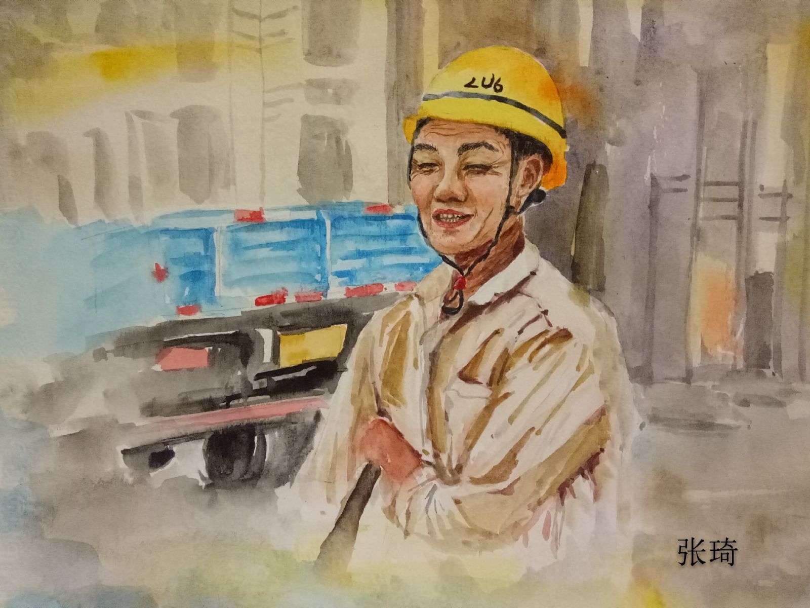 趁着工地暂停施工的短暂时间,队员抓紧时间对工人们进行采访、拍摄、录像,为绘制全家福准备素材。“工人们在接受采访时,脸上都是质朴的笑容。虽然一开始他们都有点放不开,但渐渐都放松了下来,有些工人夫妇为了配合我们拍照,还彼此互动,让我们感到十分暖心,工地的负责人也很热情,为我们提供了许多照片。”小分队队长张琦回忆道。