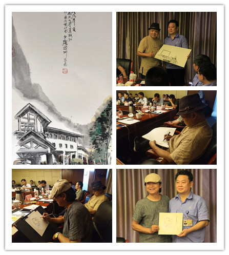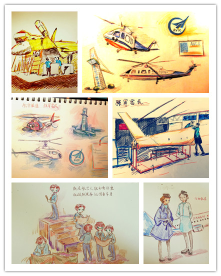 本次调研团的组成比较特别,有着一群擅长手绘的老师和同学们,每走访一家企业,老师和同学们都会拿起画笔,在画布上描绘自己的所见、所闻、所想、所感。在昌飞,国家一级舞美师王立庆教授和中国美术家协会会员张利华教授现场作画并将画作赠送给昌飞的校友们,让校友们感受到了来自母校的真诚问候。每一个线条、每一笔勾勒、每一处着色,师生们都融入了自己的体会与情感,这可能就是这次调研之旅给师生们带来的那份国防情吧。