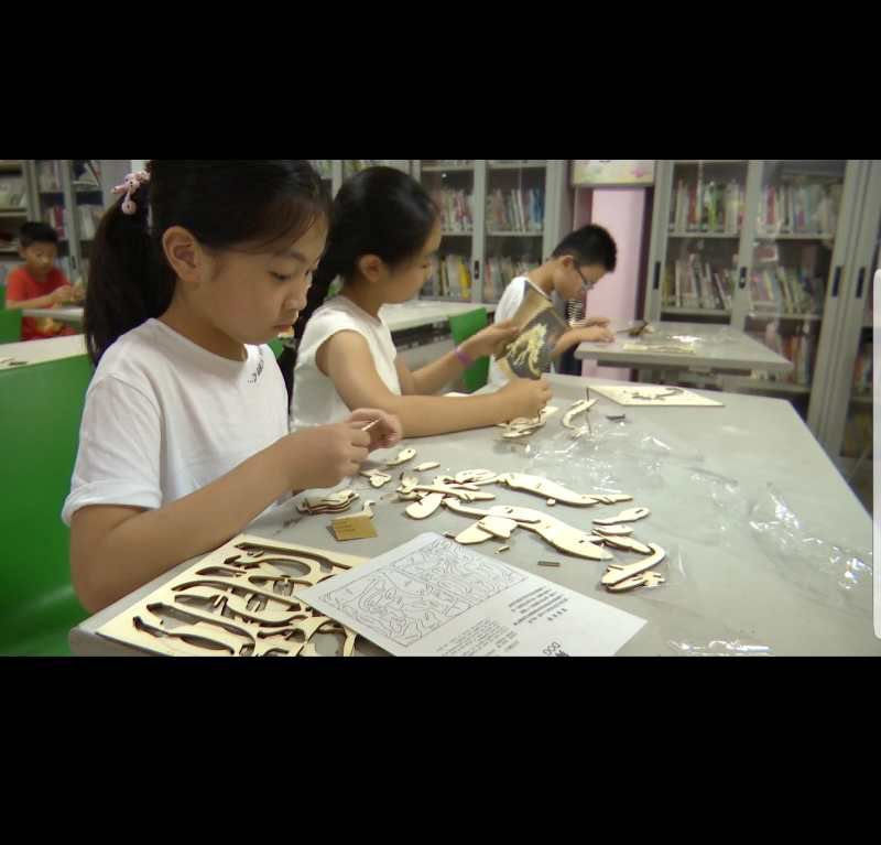 7月8日上午,团队一行人来到苏州加城社区,在一间教室中开始了他们的实践。听课的大多数为10岁的小孩子,对于木头制造的工具和作品有着浓厚的兴趣。带着各种各样木头工具以及木头制品的队员们一到教室,孩子们纷纷向他们投以了好奇的目光。