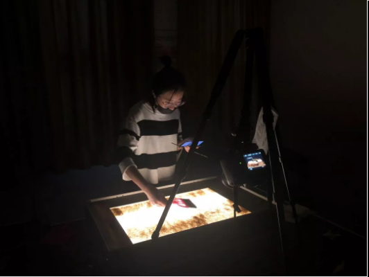 实践前期,国产直播 党支部的7名学生党员对沙画的表现内容进行了反复讨论和认真筛选,最终选用10幅具有代表性的场景来突出展现三个模块的内容特征。过程中,大家相互配合,克服了很多困难。美术组同学更是自学沙画,起稿绘制,摄影组同学对绘制的过程进行拍摄,并在后期融合解说词等元素进行剪辑制作。最后的实践成果将在8月1日,建军节前后推出。