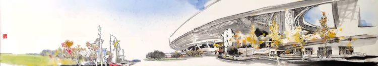 2018年8月,“《为人民而创作》王立庆教授大型书画作品展”走进南京江北新区美术作品巡展(第五站)。本次展览旨在反映改革开放40周年江北新区发展新貌,由南京江北新区宣传部、江苏省中国画学会、南京航空航天大学主办、江苏格冠美术馆承办。 2018年8月15日—8月23日,王立庆教授及创作团队第三次来到江北新区采风,访问了建设指挥部的相关领导、实地走访中央商务区展示中心,中国葛洲坝建设集团承建的中央核心商务区的建设工地,对江北新区未来五年发展的规划及新区成立三周年来的实施情况又做了新的深入了解。方案大量的保留了历史人文景观和遗存,把它打造成象征这座城市的精神堡垒,其中包括铁路暂桥等等,在建设投入上也充分考虑未来的发展趋势做到步步领先,仅老浦口火车站历史文化街区一项投资就高达500亿。如今整个江北新区就是一个大的建设工地,火热的生活令艺术家们感到无比振奋,虽然在实现理想的过程中总是会有许多艰难险阻,但这正是这个伟大时代所赋予我们的责任与担当。江北新区为南京、为中国勾画了现代化的美好愿景。 作为此次承办单位江苏格冠美求馆以生态文明、精神文明为本,自始自终都以严谨的治学精神,在筹办此次巡展的所有细节上力求尊重艺术家的首创、强调作品的原创性、独特性,力图在展览形式和互动上努力打造艺术巡展新亮点,也使得王立庆教授“画身边的人、画身边的事,画心路历程”有了新的起点和动力。《南京青奥体育中心》 尺寸:180X33Cm