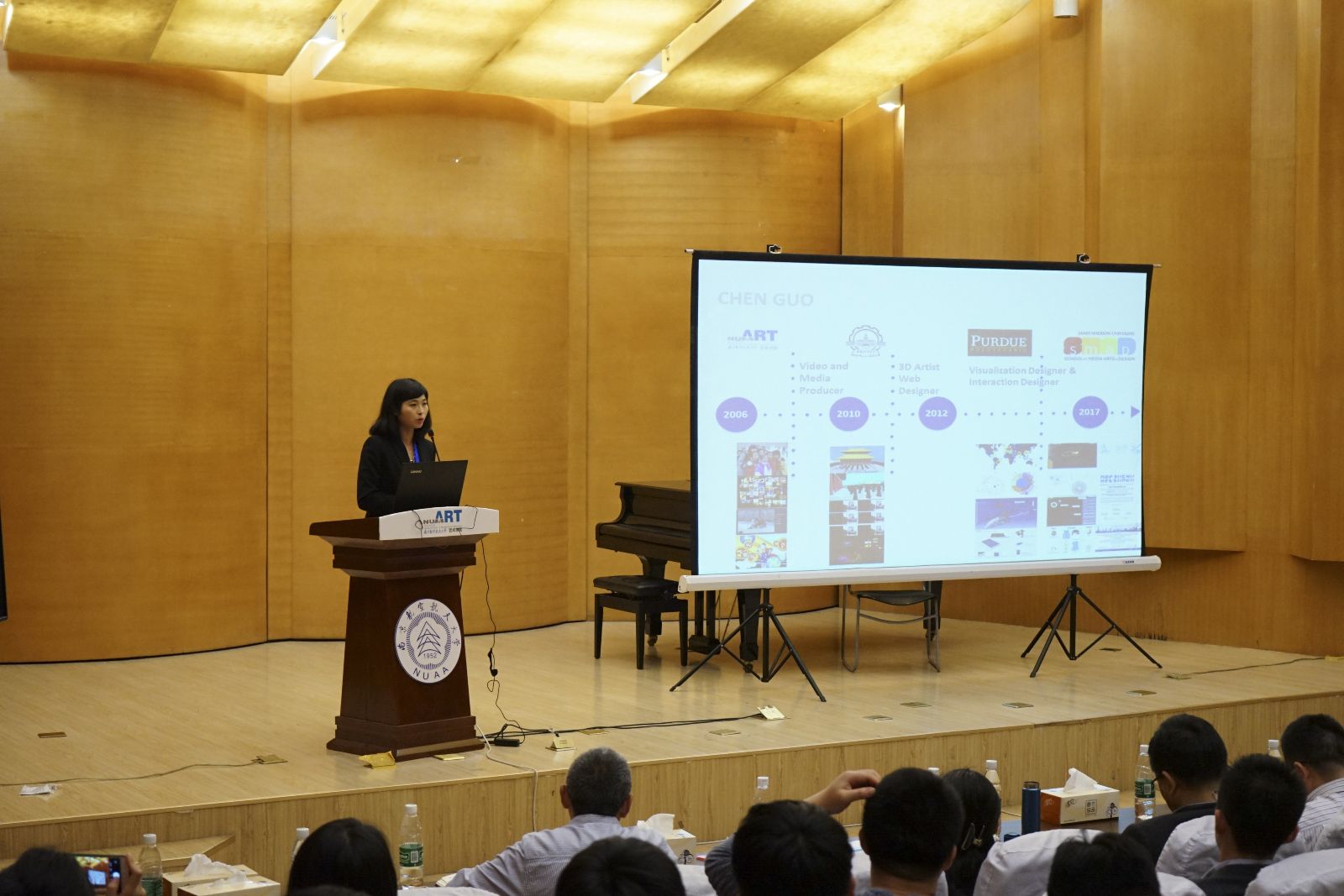 执教于美国詹姆斯麦迪逊大学媒体艺术与设计系、美国普度大学计算机图形学专业的郭琛博士来了,她坚持“以人为本”的设计理念,其开发的交互式系统作品赢得国际信息可视化系统设计大奖和国际人机交互大会设计竞赛奖。更为难得的是,郭琛博士本科正就读于南航国产直播 ,她的出现令学弟学妹倍感振奋和自豪。中国传媒大学的褚儒博士来了,他的研究领域为跨国电影、影视产业和类型美学,是英国圣安德鲁斯大学访问学者、青年编剧,英国电影电视与银幕研究协会(BAFTSS)会员,师从著名编剧周涌教授。上海师范大学孙丽君博士来了,她从事音乐认知神经科学的研究,已有多篇SSCI/SCI论文发表,成果丰硕。他们专业学识丰富,满怀着年轻人对学术研究的执着热情,为5月的南航增添了光彩和活力。